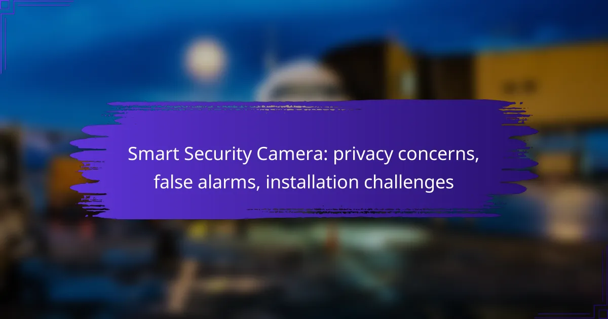 Smart security cameras offer enhanced surveillance capabilities but come with notable privacy concerns, including data security and potential misuse. Users must navigate challenges such as false alarms and installation complexities to ensure these devices function effectively while safeguarding their personal information. Understanding these aspects is vital for maximizing the benefits of smart security technology.